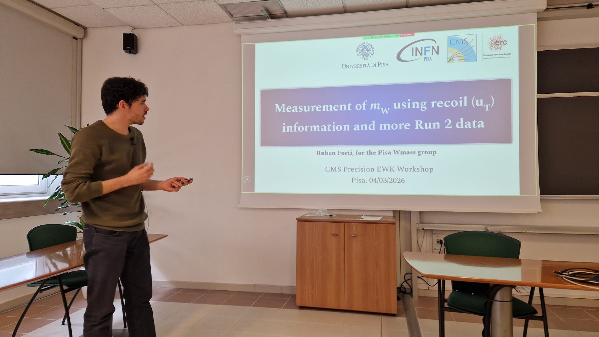 - R. Forti, "Measurement of mW using recoil (uT) information and more Run 2 data", CMS Precision EWK Workshop, Pisa, 03-03-2026, link